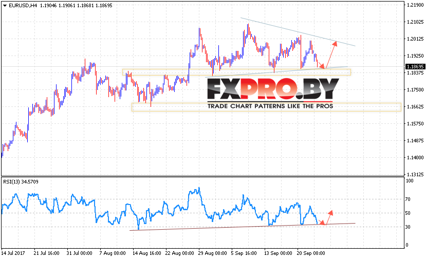 Таким образом, EUR/USD прогноз Евро Доллар на 26 сентября 2017 предполагает попытку роста и теста уровня 1.1980, в пользу роста евро доллар выступает тест линии поддержки на индикаторе относительной силы, отменой варианта роста пары станет падение и пробой уровня 1.1820.