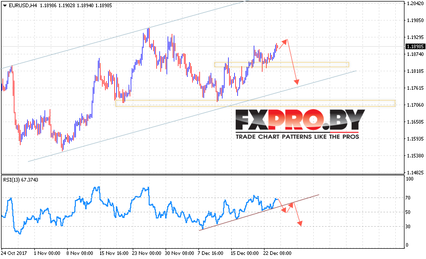 Таким образом, EUR/USD прогноз Евро Доллар на 28 декабря 2017 предполагает попытку теста уровня 1.1910, откуда стоит ожидать начала падения пары в область ниже 1.1760, в рамках отработки разворотной модели на индикаторе относительной силы, отменой варианта падения EUR/USD станет пробой уровня 1.1930, что укажет на продолжение роста.