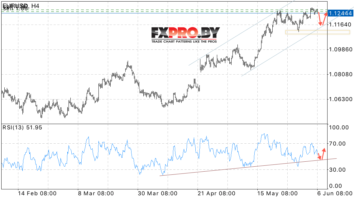 Таким образом, EUR/USD прогноз Евро Доллар на 7 июня 2017 предполагает попытку падения в область ниже уровня 1.1170 в рамках отработки разворотной модели, откуда стоит ожидать продолжения рост пары евро доллар, отменой падения может стать пробой области 1.1290.