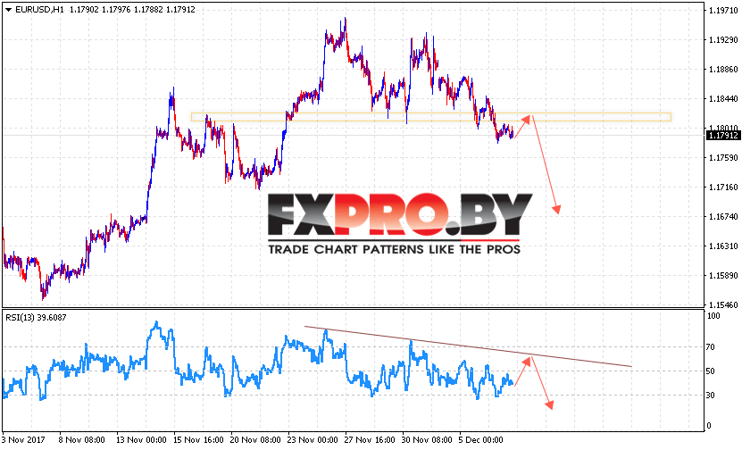 Таким образом, EUR/USD прогноз Евро Доллар на 8 декабря 2017 предполагает попытку теста уровня сопротивления вблизи 1.1830, откуда стоит ожидать продолжения падения в область ниже 1.1670, в пользу падения выступит тест нисходящей линии тренда на индикаторе относительной силы, отменой варианта снижения EUR/USD станет пробой уровня 1.1860, что укажет на продолжение роста.