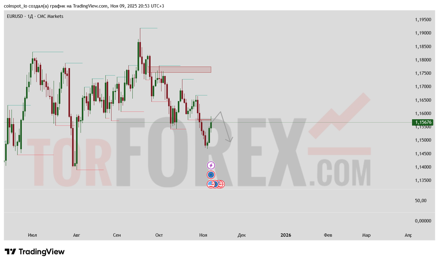 - Заполнение FVG-зоны усилит вероятность снижения к 1.1450–1.1420.