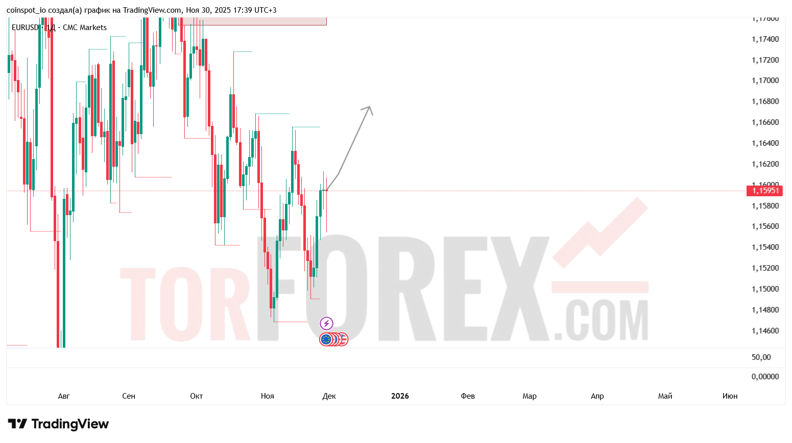 • Нижняя FVG: 1.1500–1.1470 USD — остаётся незаполненной и может притянуть цену при развороте