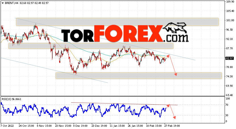 Дополнительным сигналом в пользу снижения котировок и цен на нефть Brent выступит тест линии сопротивления на индикаторе относительной силы (RSI). Вторым сигналом станет отбой от верхней границы нисходящего канала. Отменой варианта падения цен на нефть станет сильный рост и пробой уровня 86.75 долларов за баррель. Это укажет на пробой области сопротивления и продолжение роста котировок BRENT в область выше уровня 94.85. Подтверждением падению котировок выступит пробой области поддержки и закрытие цен на Brent ниже уровня 77.35.