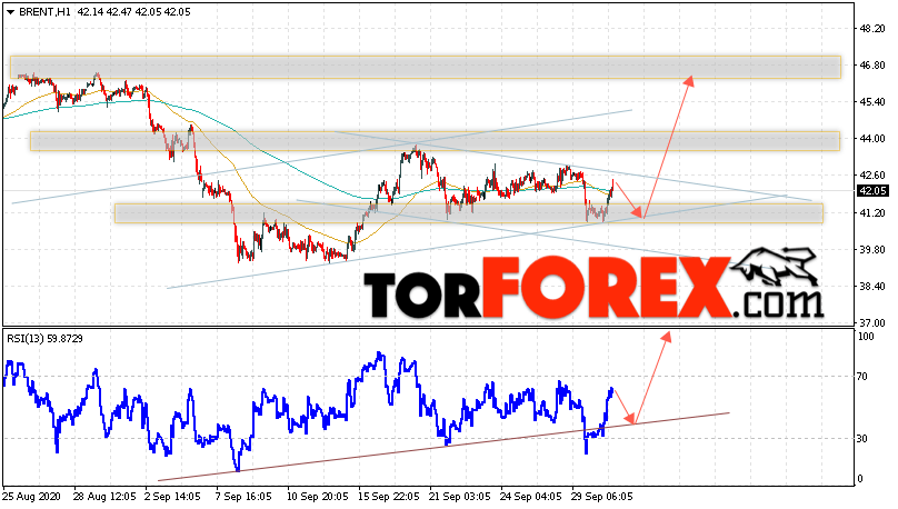 Дополнительным сигналом в пользу роста котировок и цен на нефть Brent выступит тест линии тренда на индикаторе относительной силы (RSI). Вторым сигналом станет отскок нижней границы восходящего канала. Отменой варианта подъёма цен на нефть станет падение и пробой уровня 39.65 долларов за баррель. Это укажет на пробой области поддержки и продолжение падения котировок BRENT в область ниже уровня 36.05. Подтверждением роста котировок выступит пробой уровня сопротивления и закрытие цен на Brent выше уровня 43.05, что укажет на пробой верхней границы нисходящего канала.