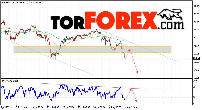 Таким образом, Аналитика и прогноз цен на нефть на 10 августа 2021 предполагает попытку теста уровня сопротивления вблизи области 69.45. Далее, продолжение падения с целью ниже уровня 63.85. В пользу снижения выступит тест линии тренда на индикаторе относительной силы. Отменой варианта падения цены нефти Brent станет сильный рост и пробой уровня 73.35. Это укажет на продолжение подъёма котировок в область выше уровня 75.65.