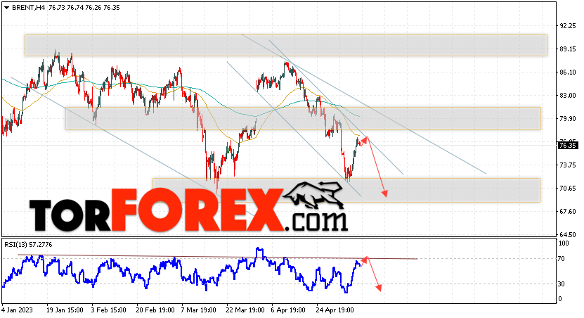 Дополнительным сигналом в пользу снижения котировок и цен на нефть Brent выступит тест линии сопротивления на индикаторе относительной силы (RSI). Вторым сигналом станет отбой от верхней границы нисходящего канала. Отменой варианта падения цен на нефть станет сильный рост и пробой уровня 81.05 долларов за баррель. Это укажет на пробой области сопротивления и продолжение роста котировок BRENT в область выше уровня 87.45. Подтверждением падению котировок выступит пробой области поддержки и закрытие цен на Brent ниже уровня 70.45.