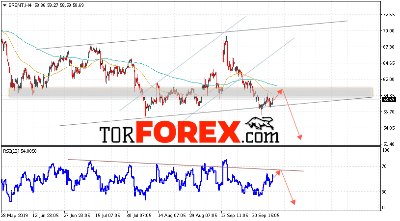 Таким образом, Аналитика и прогноз цен на нефть на 10 октября 2019 предполагает попытку теста уровня сопротивления вблизи области 59.85. Далее, продолжение падения с целью ниже уровня 51.65. В пользу снижения выступит тест линии тренда на индикаторе относительной силы. Отменой варианта падения цены нефти Brent станет сильный рост и пробой уровня 62.65. Это укажет на продолжение подъёма котировок в область выше уровня 64.95.