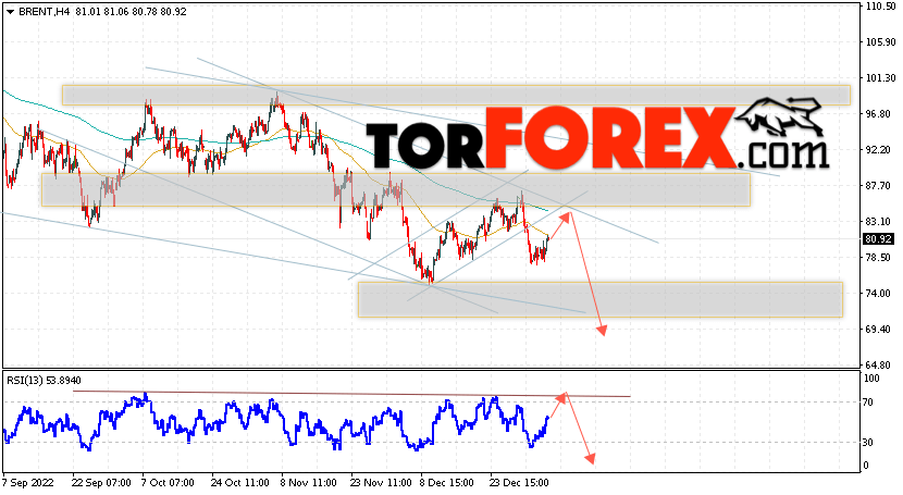 Дополнительным сигналом в пользу снижения котировок и цен на нефть Brent выступит тест линии сопротивления на индикаторе относительной силы (RSI). Вторым сигналом станет отбой нижней границы бычьего канала, который был пробит продавцами вниз. Отменой варианта падения цен на нефть станет сильный рост и пробой уровня 88.65 долларов за баррель. Это укажет на пробой области сопротивления и продолжение роста котировок BRENT в область выше уровня 96.65. Подтверждением падению котировок выступит пробой области поддержки и закрытие цен на Brent ниже уровня 74.85.