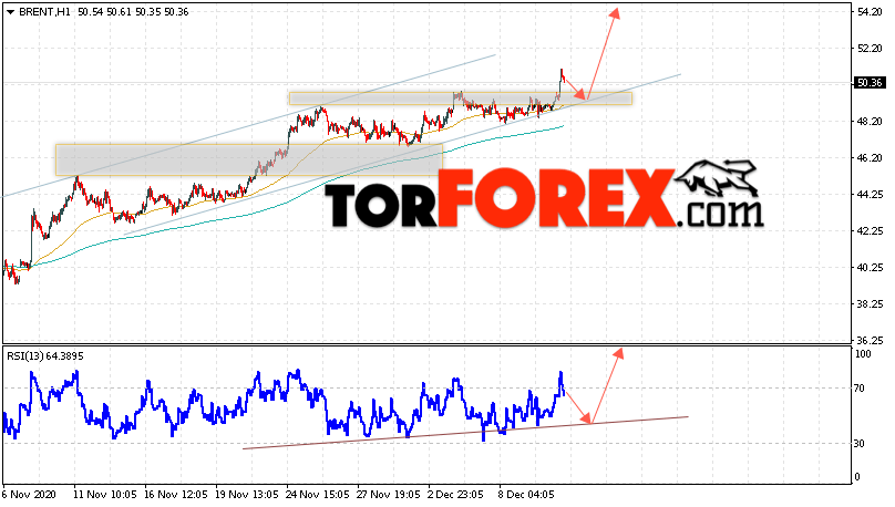 Дополнительным сигналом в пользу роста котировок и цен на нефть Brent выступит тест линии тренда на индикаторе относительной силы (RSI). Вторым сигналом станет отскок от нижней гардины восходящего канала. Отменой варианта подъёма цен на нефть станет падение и пробой уровня 46.75 долларов за баррель. Это укажет на пробой области поддержки и продолжение падения котировок BRENT в область ниже уровня 42.45. Подтверждением роста котировок выступит пробой уровня сопротивления и закрытие цен на Brent выше уровня 52.55.