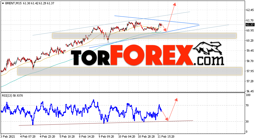 Дополнительным сигналом в пользу роста котировок и цен на нефть Brent выступит тест линии тренда на индикаторе относительной силы (RSI). Вторым сигналом станет отскок от нижней границы модели ”Треугольник”. Отменой варианта подъёма цен на нефть станет падение и пробой уровня 59.45 долларов за баррель. Это укажет на пробой области поддержки и продолжение падения котировок BRENT в область ниже уровня 56.55. Подтверждением роста котировок выступит пробой уровня сопротивления и закрытие цен на Brent выше уровня 62.65, что укажет на пробой верхней границы модели ”Треугольник”.