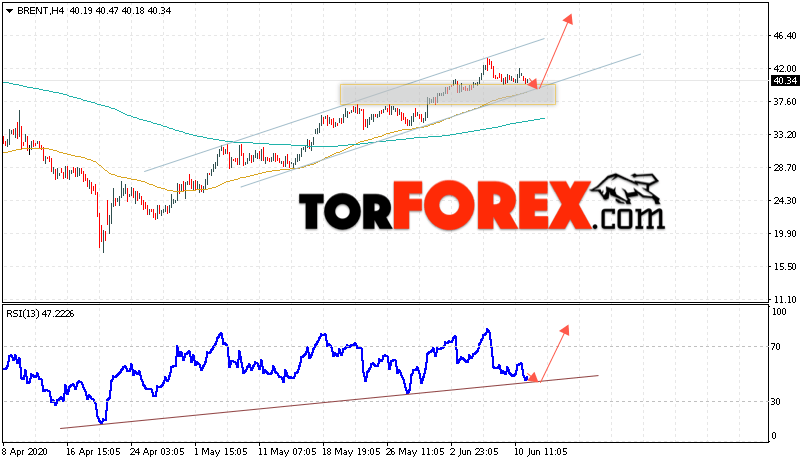 Дополнительным сигналом в пользу подъёма котировок и цен на нефть Brent выступит тест линии тренда на индикаторе относительной силы (RSI). Вторым сигналом станет отскок от нижней границы восходящего канала. Отменой варианта подъёма цен на нефть станет падение цен и пробой уровня 36.55 долларов за баррель. Это укажет на пробой области поддержки и продолжение падения котировок BRENT в область ниже уровня 31.55. Подтверждением подъёма котировок выступит пробой уровня сопротивления и закрытие цен на Brent выше уровня 43.65.