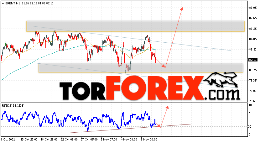 Дополнительным сигналом в пользу подъёма котировок и цен на нефть Brent выступит тест линии линий тренда на индикаторе относительной силы (RSI). Вторым сигналом станет пробой верхней границы нисходящего канала. Отменой варианта роста цен на нефть станет падение и пробой уровня 78.45 долларов за баррель. Это укажет на пробой области поддержки и продолжение снижения котировок BRENT в область ниже уровня 74.05. Подтверждением подъёма котировок выступит пробой уровня сопротивления и закрытие цен на Brent выше уровня 86.55.