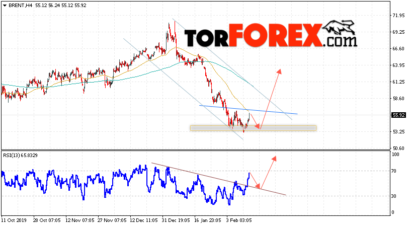 Таким образом, Аналитика и прогноз цен на нефть на 13 февраля 2020 предполагает попытку теста уровня поддержки вблизи области 53.45. Далее, продолжение роста с целью выше уровня 63.85. В пользу подъёма выступит тест нисходящей линии на индикаторе относительной силы. Отменой варианта роста цены нефти Brent станет падение и пробой уровня 52.55. Это укажет на продолжение снижения котировок в область ниже уровня 48.45.
