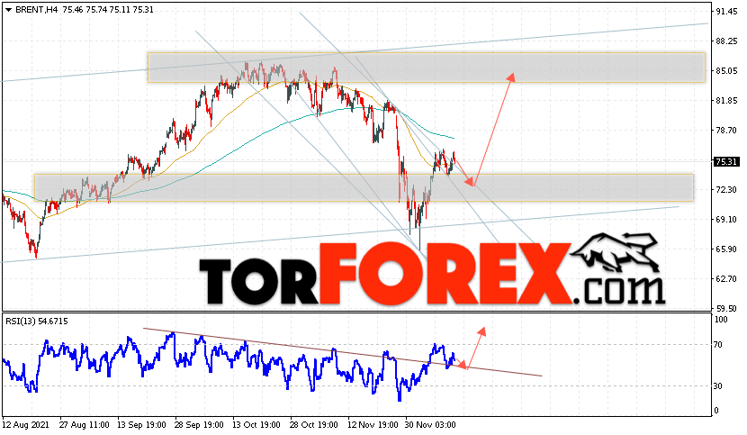 Дополнительным сигналом в пользу подъёма котировок и цен на нефть Brent выступит тест пробитой линии тренда на индикаторе относительной силы (RSI). Вторым сигналом станет отскок от верхней границы нисходящего канала. Отменой варианта роста цен на нефть станет падение и пробой уровня 65.95 долларов за баррель. Это укажет на пробой области поддержки и продолжение падения котировок BRENT в область ниже уровня 62.35. Подтверждением подъёму котировок выступит пробой уровня сопротивления и закрытие цен на Brent выше уровня 77.85.