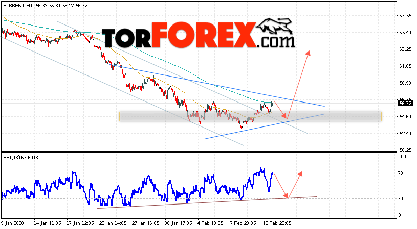 Дополнительным сигналом в пользу подъёма котировок и цен на нефть Brent выступит тест нисходящей линии тренда на индикаторе относительной силы (RSI). Вторым сигналом станет отскок от нижней границы модели «Треугольник». Отменой варианта роста цен на нефть станет падение и пробой уровня 52.45 долларов за баррель. Это укажет на пробой области поддержки и продолжение снижения котировок в область ниже уровня 47.55. Подтверждением роста котировок выступит пробой верхней границы нисходящего канала и закрытие цен на Brent выше уровня 57.15.