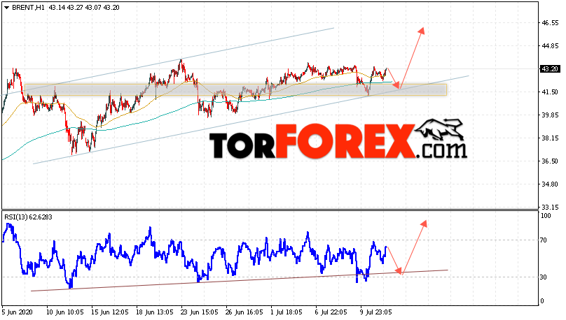 Дополнительным сигналом в пользу подъёма котировок и цен на нефть Brent выступит тест линии тренда на индикаторе относительной силы (RSI). Вторым сигналом станет отскок от нижней границы восходящего канала. Отменой варианта роста цен на нефть станет падение и пробой уровня 40.05 долларов за баррель. Это укажет на пробой области поддержки и продолжение падения котировок BRENT в область ниже уровня 36.45. Подтверждением подъёма котировок выступит пробой уровня сопротивления и закрытие цен на Brent выше уровня 45.35.