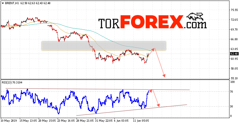 Таким образом, Аналитика и прогноз цен на нефть на 14 июня 2019 предполагает попытку теста уровня сопротивления вблизи области 63.95. Далее, продолжение падения с целью ниже уровня 55.05. В пользу снижения выступит тест линии тренда на индикаторе относительной силы. Отменой варианта падения цены нефти BRENT станет сильный рост и пробой уровня 66.95. Это укажет на продолжение подъёма котировок в область выше уровня 69.85.