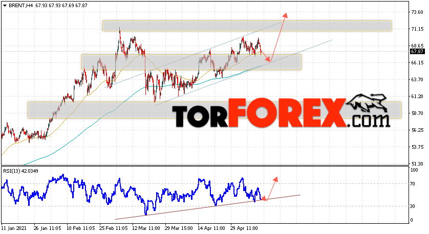 Дополнительным сигналом в пользу роста котировок и цен на нефть Brent выступит тест линии поддержки на индикаторе относительной силы (RSI). Вторым сигналом станет отскок от нижней границы бычьего канала. Отменой варианта подъёма цен на нефть станет падение и пробой уровня 63.75 долларов за баррель. Это укажет на пробой области поддержки и продолжение падения котировок BRENT в область ниже уровня 61.55. Подтверждением подъёма котировок выступит пробой уровня сопротивления и закрытие цен на Brent выше уровня 71.05.