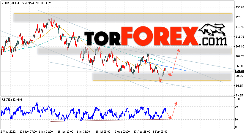 Дополнительным сигналом в пользу подъёма котировок и цен на нефть Brent выступит тест линии поддержки на индикаторе относительной силы (RSI). Вторым сигналом станет отскок от нижней границы разворотной модели ”Голова и плечи”. Отменой варианта роста цен на нефть станет падение и пробой уровня 82.05 долларов за баррель. Это укажет на пробой области поддержки и продолжение падения котировок BRENT в область ниже уровня 76.05. Подтверждением росту котировок выступит пробой области сопротивления и закрытие цен на Brent выше уровня 97.55, что укажет на пробой верхней границы медвежьего канала.