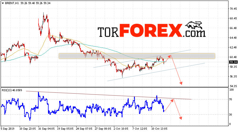 Таким образом, Аналитика и прогноз цен на нефть на 15 октября 2019 предполагает попытку теста уровня сопротивления вблизи области 60.55. Далее, продолжение падения с целью ниже уровня 54.35. В пользу снижения выступит тест линии тренда на индикаторе относительной силы. Отменой варианта падения цены нефти Brent станет сильный рост и пробой уровня 62.85. Это укажет на продолжение подъёма котировок в область выше уровня 65.45.