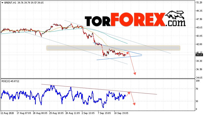 Таким образом, Аналитика и прогноз цен на нефть на 15 сентября 2020 предполагает попытку ниже уровня сопротивления вблизи области 40.05. Далее, продолжение падения с целью ниже уровня 36.05. В пользу снижения выступит тест линии тренда на индикаторе относительной силы. Отменой варианта падения цены нефти Brent станет сильный рост и пробой уровня 42.85. Это укажет на продолжение подъёма котировок в область ниже уровня 45.75.