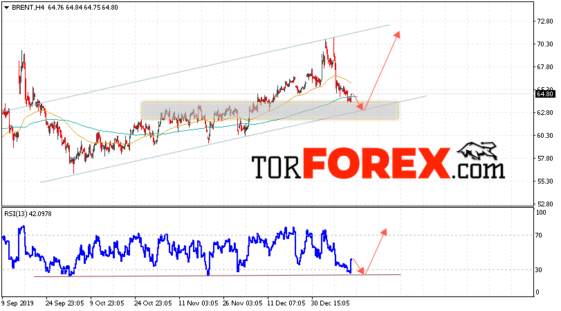 Дополнительным сигналом в пользу роста котировок и цен на нефть Brent выступит тест восходящей линии тренда на индикаторе относительной силы (RSI), как видим, значения индикатора уже оттолкнулись от данной линии. Вторым сигналом станет отскок от нижней границы восходящего канала. Отменой варианта роста цен на нефть станет падение и пробой уровня 60.55 долларов за баррель. Это укажет на пробой области поддержки и продолжение снижения котировок в область ниже уровня 58.05. Подтверждением роста котировок выступит пробой области сопротивления и закрытие цен на Brent выше уровня 66.05.