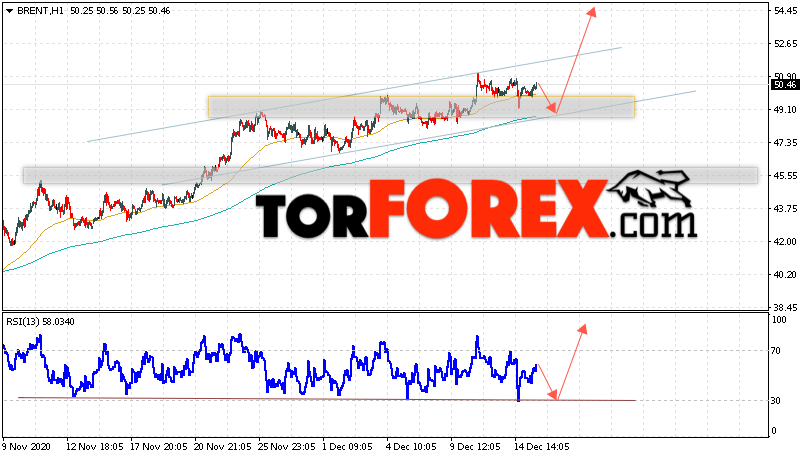 Дополнительным сигналом в пользу роста котировок и цен на нефть Brent выступит тест линии тренда на индикаторе относительной силы (RSI). Вторым сигналом станет отскок от нижней границы восходящего канала. Отменой варианта подъёма цен на нефть станет падение и пробой уровня 47.65 долларов за баррель. Это укажет на пробой области поддержки и продолжение падения котировок BRENT в область ниже уровня 43.85. Подтверждением роста котировок выступит пробой уровня сопротивления и закрытие цен на Brent выше уровня 52.95.