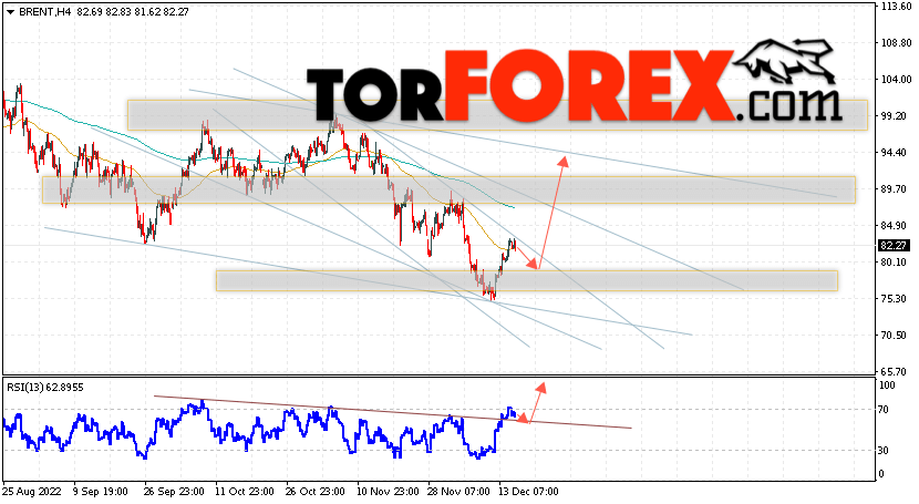 Дополнительным сигналом в пользу подъёма котировок и цен на нефть Brent выступит тест линии поддержки на индикаторе относительной силы (RSI). Вторым сигналом станет пробой верхней границы нисходящего канала. Отменой варианта подъёма цен на нефть станет падение и пробой уровня 73.45 долларов за баррель. Это укажет на пробой области поддержки и продолжение падения котировок BRENT в область ниже уровня 65.05. Подтверждением росту котировок выступит пробой области сопротивления и закрытие цен на Brent выше уровня 86.05, что укажет на пробой верхней границы нисходящего канала.