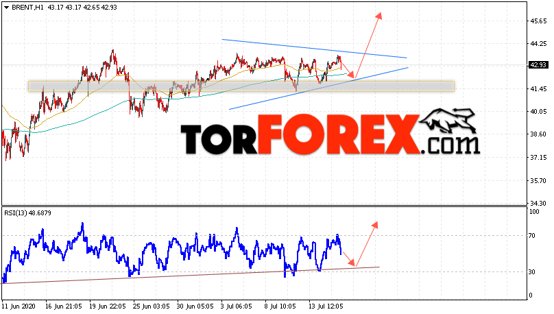 Дополнительным сигналом в пользу подъёма котировок и цен на нефть Brent выступит тест линии тренда на индикаторе относительной силы (RSI). Вторым сигналом станет отскок от нижней границы модели «Треугольник». Отменой варианта роста цен на нефть станет падение и пробой уровня 40.45 долларов за баррель. Это укажет на пробой области поддержки и продолжение падения котировок BRENT в область ниже уровня 36.65. Подтверждением подъёма котировок выступит пробой уровня сопротивления и закрытие цен на Brent выше уровня 45.05.