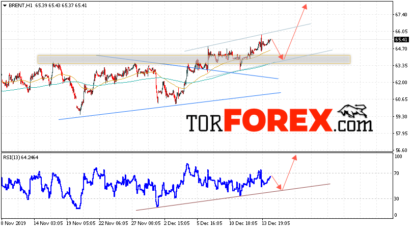 Таким образом, Аналитика и прогноз цен на нефть на 17 декабря 2019 предполагает попытку теста уровня поддержки вблизи области 63.55. Далее, продолжение роста с целью выше уровня 70.05. В пользу роста выступит тест пробитой линии на индикаторе относительной силы. Отменой варианта роста цены нефти Brent станет падение и пробой уровня 62.25. Это укажет на продолжение снижения котировок в область ниже уровня 58.35.