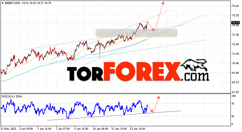 Дополнительным сигналом в пользу подъёма котировок и цен на нефть Brent выступит тест линии поддержки на индикаторе относительной силы (RSI). Вторым сигналом станет отскок от нижней границы восходящего канала. Отменой варианта роста цен на нефть станет падение и пробой уровня 72.75 долларов за баррель. Это укажет на пробой области поддержки и продолжение снижения котировок BRENT в область ниже уровня 68.55. Подтверждением подъёма котировок выступит пробой уровня сопротивления и закрытие цен на Brent выше уровня 75.95.