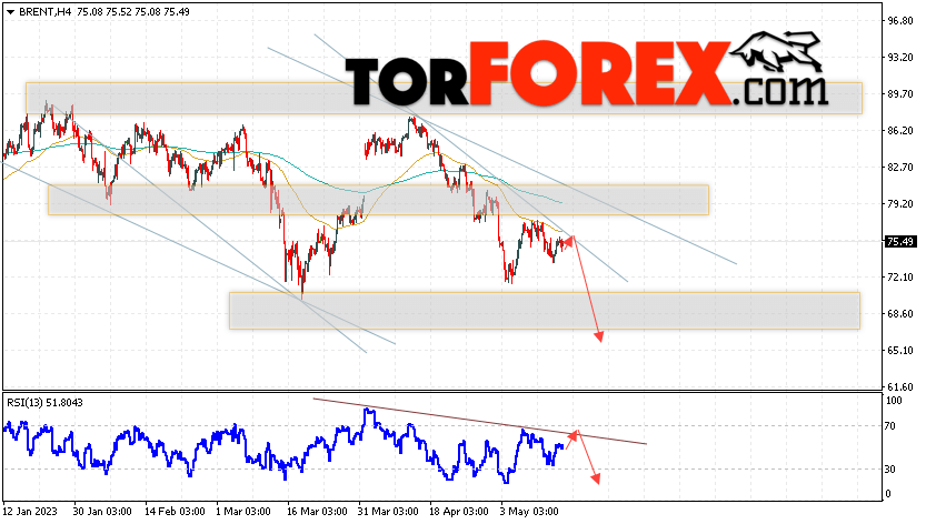 Дополнительным сигналом в пользу падения котировок и цен на нефть Brent выступит тест линии сопротивления на индикаторе относительной силы (RSI). Вторым сигналом станет отбой от верхней границы нисходящего канала. Отменой варианта падения цен на нефть станет сильный рост и пробой уровня 84.05 долларов за баррель. Это укажет на пробой области сопротивления и продолжение роста котировок BRENT в область выше уровня 90.55. Подтверждением падению котировок выступит пробой области поддержки и закрытие цен на Brent ниже уровня 71.25.