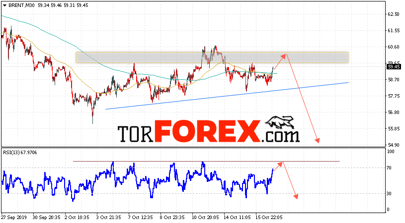 Таким образом, Аналитика и прогноз цен на нефть на 17 октября 2019 предполагает попытку теста уровня сопротивления вблизи области 59.75. Далее, продолжение падения с целью ниже уровня 54.90. В пользу снижения выступит тест линии тренда на индикаторе относительной силы. Отменой варианта падения цены нефти Brent станет сильный рост и пробой уровня 61.15. Это укажет на продолжение подъёма котировок в область выше уровня 63.35.