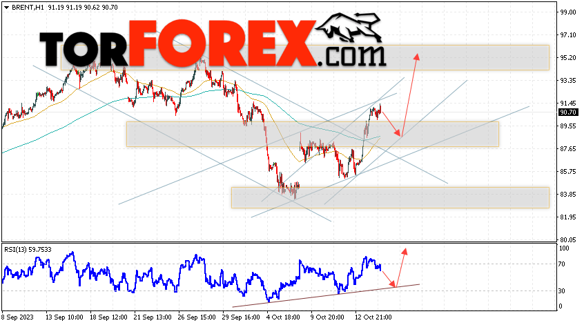 Дополнительным сигналом в пользу падения котировок и цен на нефть Brent выступит тест линии поддержки на индикаторе относительной силы (RSI). Вторым сигналом станет отбой от нижней границы бычьего канала. Отменой варианта роста цен на нефть станет падение и пробой уровня 85.05 долларов за баррель. Это укажет на пробой области поддержки и продолжение падения котировок BRENT в область ниже уровня 80.05. Подтверждением росту котировок и цен на нефть выступит пробой области сопротивления и закрытие цен на Brent выше уровня 93.05.