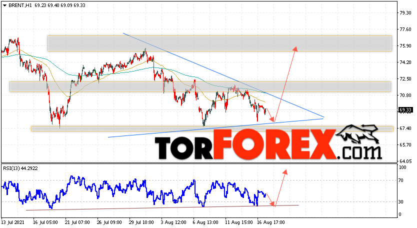 Таким образом, Аналитика и прогноз цен на нефть на 18 августа 2021 предполагает попытку теста уровня поддержки вблизи области 68.45. Далее, продолжение роста с целью выше уровня 75.85. В пользу подъёма выступит тест линии тренда на индикаторе относительной силы. Отменой варианта роста цены нефти Brent станет падение и пробой уровня 65.65. Это укажет на продолжение снижения котировок в область ниже уровня 62.45.