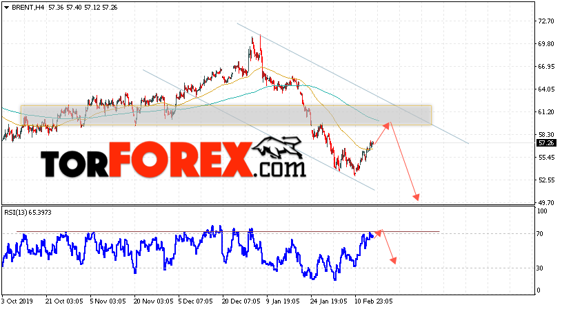 Таким образом, Аналитика и прогноз цен на нефть на 18 февраля 2020 предполагает попытку теста уровня сопротивления вблизи области 58.65. Далее, продолжение падения с целью ниже уровня 49.65. В пользу снижения выступит тест нисходящей линии на индикаторе относительной силы. Отменой варианта падения цены нефти Brent станет сильный рост и пробой уровня 64.05. Это укажет на продолжение подъёма котировок в область выше уровня 66.65.