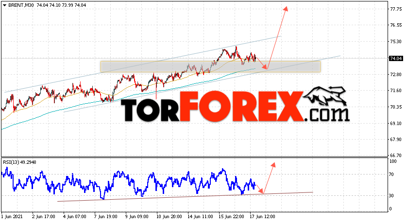 Дополнительным сигналом в пользу подъёма котировок и цен на нефть Brent выступит тест линии поддержки на индикаторе относительной силы (RSI). Вторым сигналом станет отскок от нижней границы восходящего канала. Отменой варианта роста цен на нефть станет падение и пробой уровня 71.45 долларов за баррель. Это укажет на пробой области поддержки и продолжение снижения котировок BRENT в область ниже уровня 67.45. Подтверждением подъёма котировок выступит пробой уровня сопротивления и закрытие цен на Brent выше уровня 76.25.