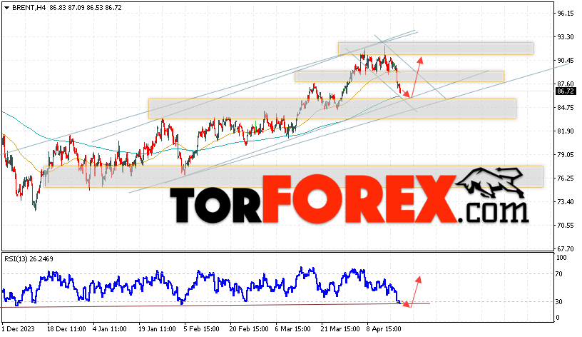 Дополнительным сигналом в пользу роста котировок и цен на нефть Brent выступит тест линии поддержки на индикаторе относительной силы (RSI). Вторым сигналом станет отбой от нижней границы бычьего канала. Отменой варианта роста цен на нефть станет падение цен и пробой уровня 83.05 долларов за баррель. Это укажет на пробой области поддержки и продолжение падения котировок BRENT в область ниже уровня 77.65. Подтверждением роста котировок и цен на нефть выступит пробой области сопротивления и закрытие цен на Brent выше уровня 90.05.