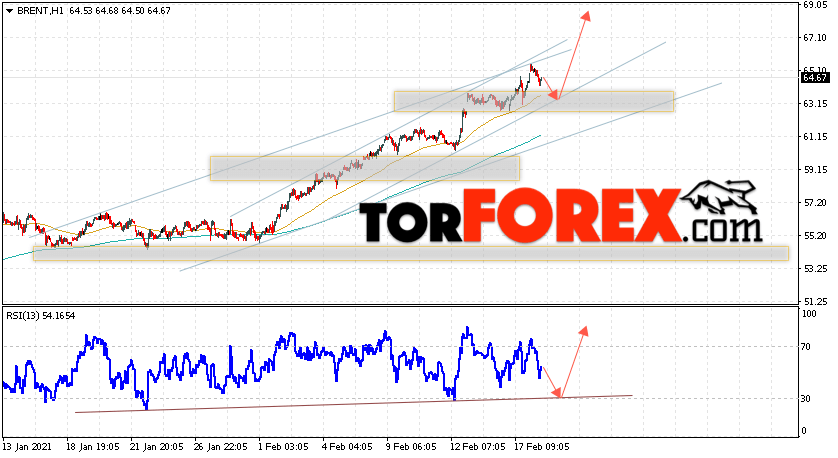 Дополнительным сигналом в пользу роста котировок и цен на нефть Brent выступит тест линии тренда на индикаторе относительной силы (RSI). Вторым сигналом станет отскок от нижней границы восходящего канала. Отменой варианта подъёма цен на нефть станет падение и пробой уровня 62.25 долларов за баррель. Это укажет на пробой области поддержки и продолжение падения котировок BRENT в область ниже уровня 56.55. Подтверждением роста котировок выступит пробой уровня сопротивления и закрытие цен на Brent выше уровня 66.35.