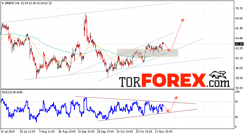 Таким образом, Аналитика и прогноз цен на нефть на 19 ноября 2019 предполагает попытку теста уровня поддержки вблизи области 62.05. Далее, продолжение роста с целью выше уровня 68.65. В пользу подъёма выступит тест области поддержки на индикаторе относительной силы. Отменой варианта роста цены нефти Brent станет падение и пробой уровня 59.25. Это укажет на продолжение снижения котировок в область ниже уровня 53.45.