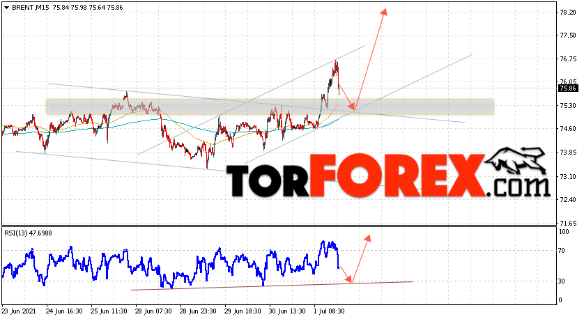 Дополнительным сигналом в пользу подъёма котировок и цен на нефть Brent выступит тест линии поддержки на индикаторе относительной силы (RSI). Вторым сигналом станет отскок от нижней границы восходящего канала. Отменой варианта роста цен на нефть станет падение и пробой уровня 73.45 долларов за баррель. Это укажет на пробой области поддержки и продолжение снижения котировок BRENT в область ниже уровня 67.05. Подтверждением подъёма котировок выступит пробой уровня сопротивления и закрытие цен на Brent выше уровня 77.35.