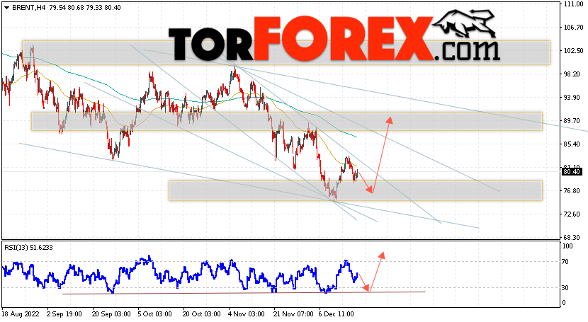 Дополнительным сигналом в пользу подъёма котировок и цен на нефть Brent выступит тест линии поддержки на индикаторе относительной силы (RSI). Вторым сигналом станет пробой верхней границы нисходящего канала. Отменой варианта подъёма цен на нефть станет падение и пробой уровня 71.35 долларов за баррель. Это укажет на пробой области поддержки и продолжение падения котировок BRENT в область ниже уровня 64.55. Подтверждением росту котировок выступит пробой области сопротивления и закрытие цен на Brent выше уровня 86.05, что укажет на пробой верхней границы нисходящего канала.