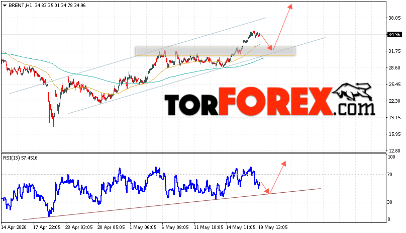 Дополнительным сигналом в пользу подъёма котировок и цен на нефть Brent выступит тест линии тренда на индикаторе относительной силы (RSI). Вторым сигналом станет отскок от нижней границы восходящего канала. Отменой варианта подъёма цен на нефть станет падение цен и пробой уровня 29.25 долларов за баррель. Это укажет на пробой области поддержки и продолжение падения котировок BRENT в область ниже уровня 24.55. Подтверждением подъёма котировок выступит пробой уровня сопротивления и закрытие цен на Brent выше уровня 36.35.