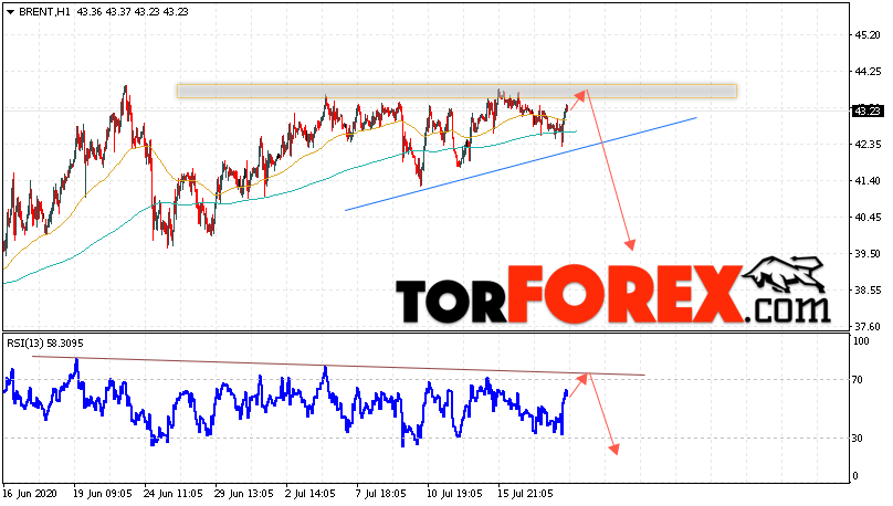 Таким образом, Аналитика и прогноз цен на нефть на 21 июля 2020 предполагает попытку теста уровня сопротивления вблизи области 44.05. Далее, продолжение падения с целью ниже уровня 39.55. В пользу снижения выступит тест линии тренда на индикаторе относительной силы. Отменой варианта падения цены нефти Brent станет сильный рост и пробой уровня 45.65. Это укажет на продолжение подъёма котировок в область выше уровня 50.05.