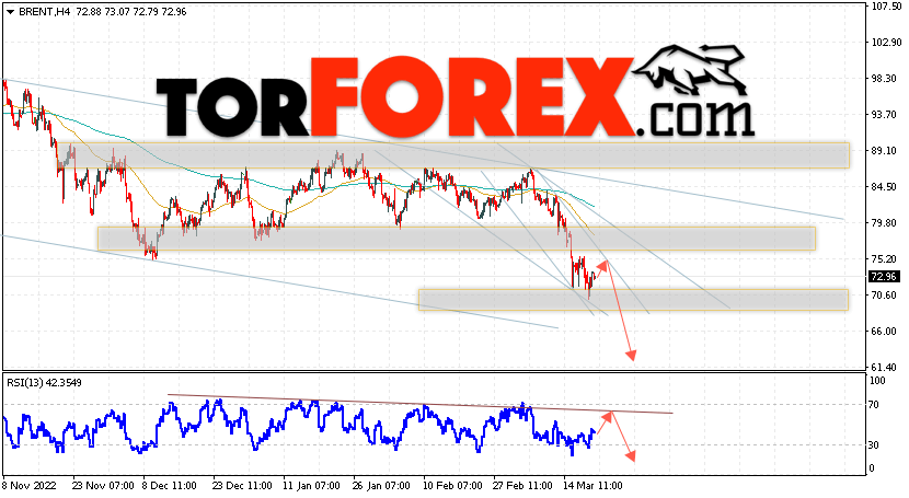 Дополнительным сигналом в пользу падения котировок и цен на нефть Brent выступит тест линии сопротивления на индикаторе относительной силы (RSI). Вторым сигналом станет отбой от верхней границы нисходящего канала. Отменой варианта падения цен на нефть станет сильный рост и пробой уровня 78.55 долларов за баррель. Это укажет на пробой области сопротивления и продолжение роста котировок BRENT в область выше уровня 85.45. Подтверждением падению котировок выступит пробой области поддержки и закрытие цен на Brent ниже уровня 68.05.
