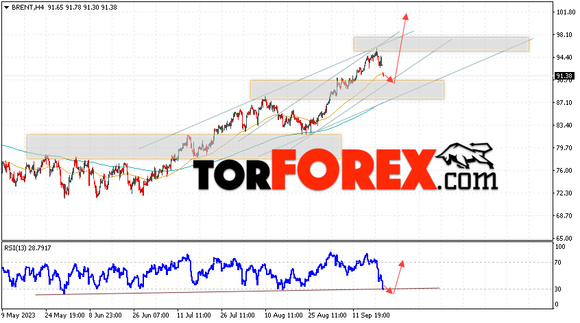 Дополнительным сигналом в пользу роста котировок и цен на нефть Brent выступит тест линии поддержки на индикаторе относительной силы (RSI). Вторым сигналом станет отбой от нижней границы бычьего канала. Отменой варианта подъёма цен на нефть станет падение и пробой уровня 86.55 долларов за баррель. Это укажет на пробой области поддержки и продолжение падения котировок BRENT в область ниже уровня 80.05. Подтверждением росту котировок и цен на нефть выступит пробой области сопротивления и закрытие цен на Brent выше уровня 94.05.