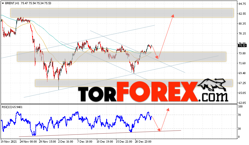 Дополнительным сигналом в пользу подъёма котировок и цен на нефть Brent выступит тест бычьей линии тренда на индикаторе относительной силы (RSI). Вторым сигналом станет отскок от нижней границы разворотной модели ”Голова и плечи”. Отменой варианта падения цен на нефть станет сильный рост и пробой уровня 68.45 долларов за баррель. Это укажет на пробой области поддержки и продолжение падения котировок BRENT в область ниже уровня 65.25. Подтверждением подъёму котировок выступит пробой уровня сопротивления и закрытие цен на Brent выше уровня 76.75, что укажет на завершение формирования разворотной модели ”Голова и плечи”.