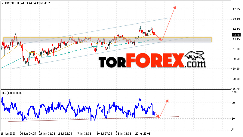 Дополнительным сигналом в пользу подъёма котировок и цен на нефть Brent выступит тест линии тренда на индикаторе относительной силы (RSI). Вторым сигналом станет отскок от нижней границы восходящего канала. Отменой варианта роста цен на нефть станет падение и пробой уровня 41.75 долларов за баррель. Это укажет на пробой области поддержки и продолжение падения котировок BRENT в область ниже уровня 37.85. Подтверждением подъёма котировок выступит пробой уровня сопротивления и закрытие цен на Brent выше уровня 46.05.