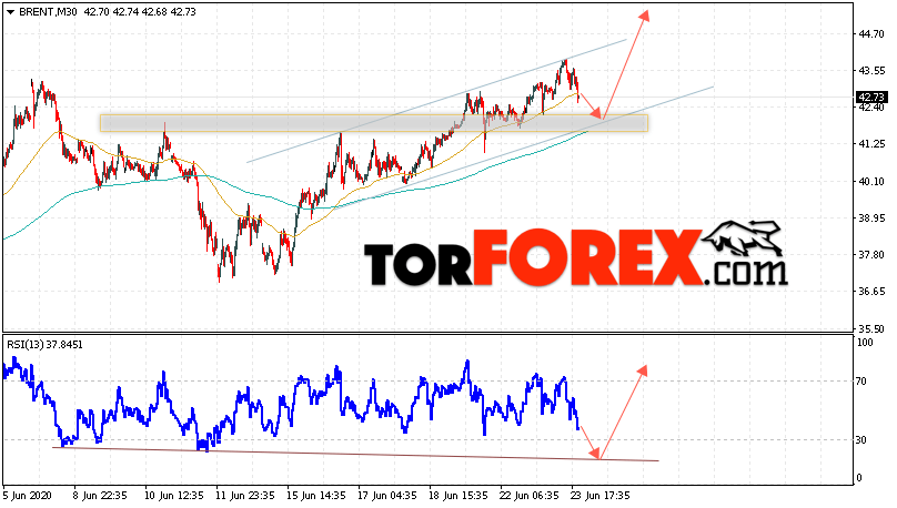 Дополнительным сигналом в пользу подъёма котировок и цен на нефть Brent выступит тест линии тренда на индикаторе относительной силы (RSI). Вторым сигналом станет отскок от нижней границы восходящего канала. Отменой варианта подъёма цен на нефть станет падение цен и пробой уровня 39.55 долларов за баррель. Это укажет на пробой области поддержки и продолжение падения котировок BRENT в область ниже уровня 35.85. Подтверждением подъёма котировок выступит пробой уровня сопротивления и закрытие цен на Brent выше уровня 44.05.