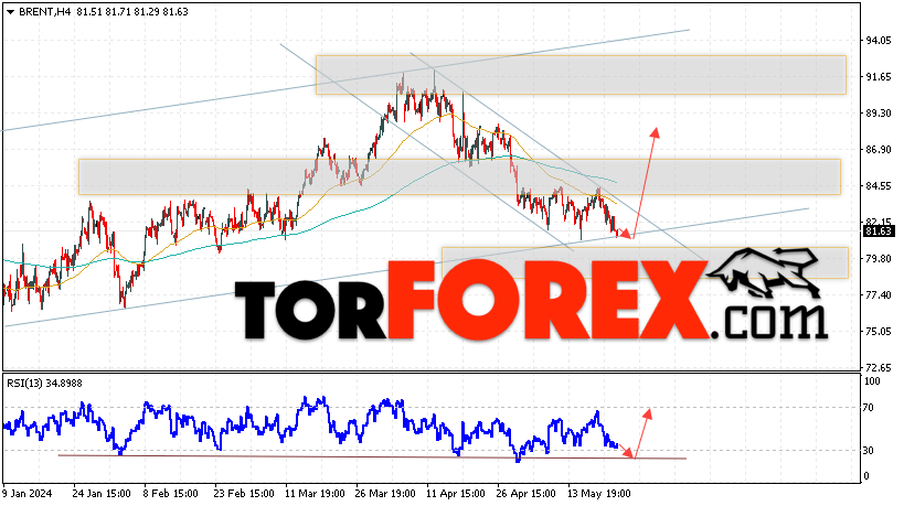 Дополнительным сигналом в пользу подъёма котировок и цен на нефть Brent выступит тест линии поддержки на индикаторе относительной силы (RSI). Вторым сигналом станет отбой от верхней границы медвежьего канала. Отменой варианта роста цен на нефть станет падение цен и пробой уровня 78.25 долларов за баррель. Это укажет на пробой области поддержки и продолжение падения котировок BRENT в область ниже уровня 71.65. Подтверждением росту котировок и цен на нефть выступит пробой области сопротивления и закрытие цен на Brent выше уровня 85.05, что укажет на пробой верхней границы нисходящего канала.